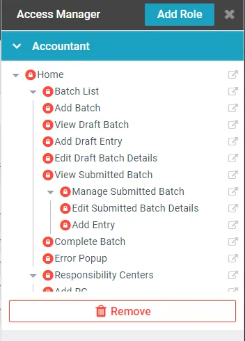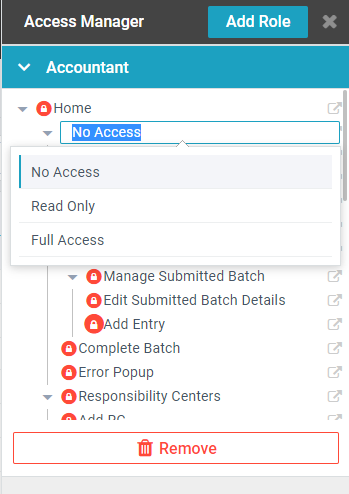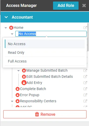 - To Change Access Click on the Circle next to the page name and select the appropriate access level.