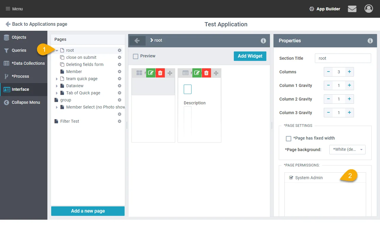 - That role can now see all root pages in the module. From the user interface builder you can open a root page and change the Page Permissions in the Properties panel.