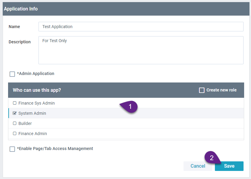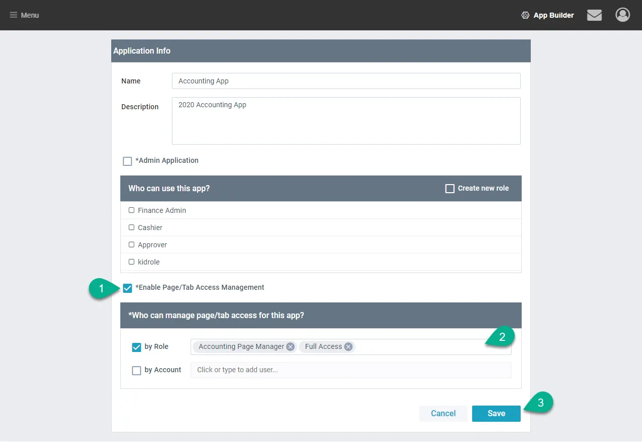 - Select Enable Page/Tab Access Management