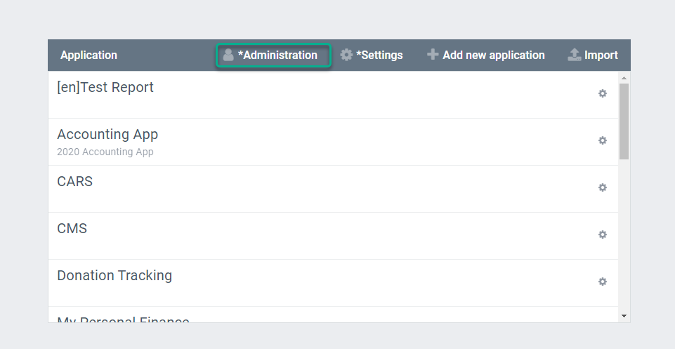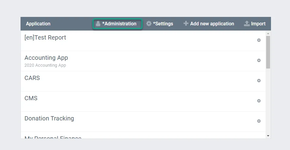 - In AppBuilder go to the Administration Page