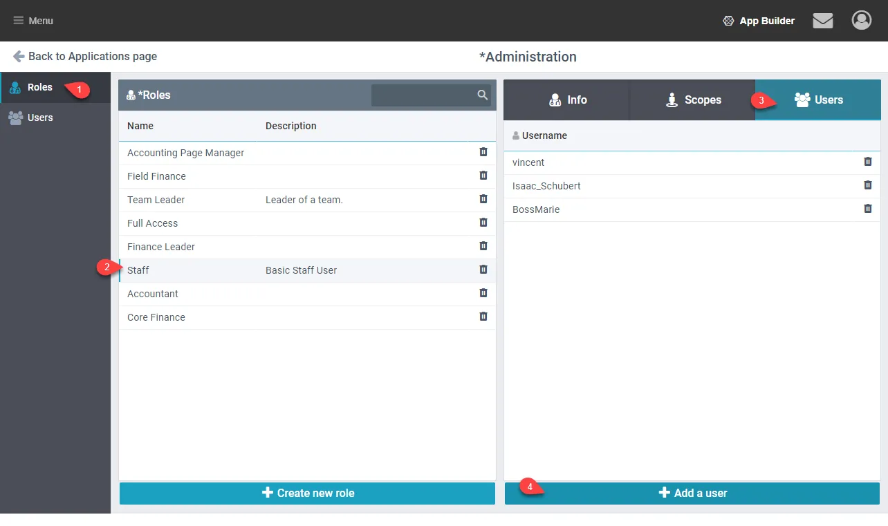 - Open the AppBuilder Administration, Roles page