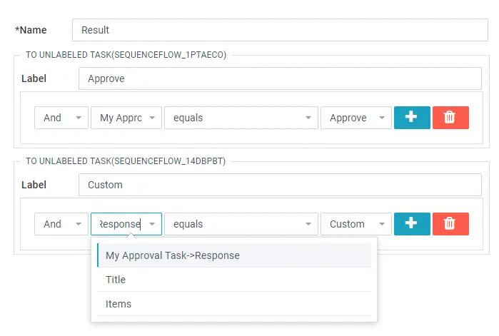 Add a gateway after the approval task and the task options that would happen based on the approval result.