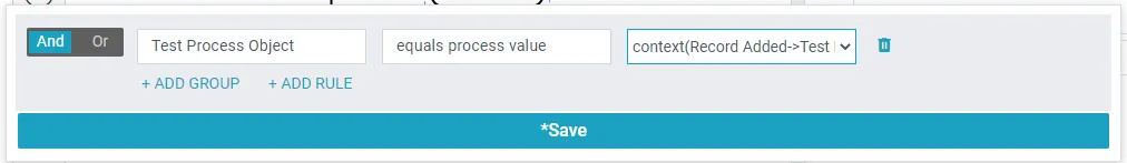 - Add a filter and match the record that equals the process value at the process trigger (context)
