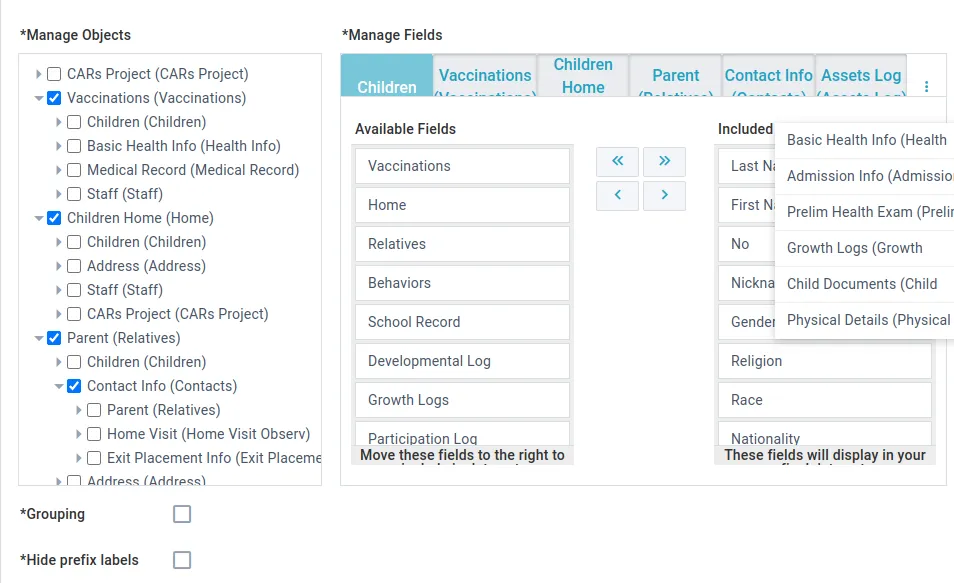 Filename - Change the filename for the reports created and downloaded.