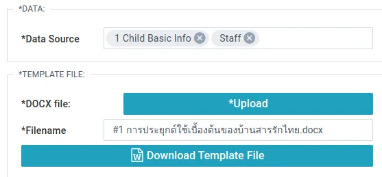 DOCX file - Upload your template file.
